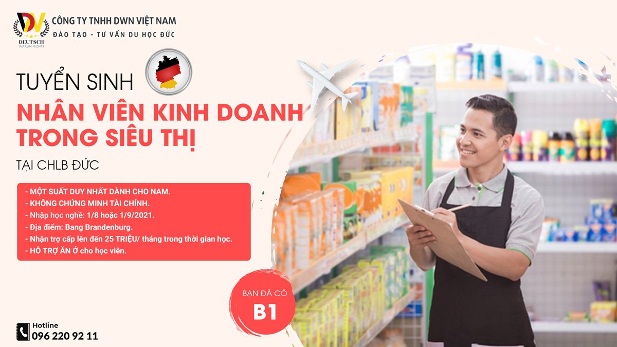 TUYỂN GẤP 01 NHÂN VIÊN KINH DOANH TRONG SIÊU THỊ LÀM VIỆC TẠI CHLB ĐỨC – KHÔNG CHỨNG MINH TÀI CHÍNH