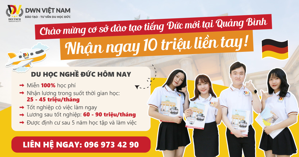 Chào mừng cơ sở Đào tạo tiếng Đức mới tại Quảng Bình, DWN Việt Nam tặng ngay 10 triệu đồng…